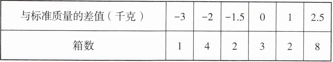 最重的一箱比标准质量多$2.5$千克,最轻的一箱比标准质量少$3$千克。