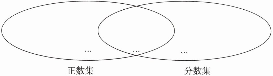 4. 下图中的两个圈分别表示正数集和分数集,请你在每个圈中及它们重叠的部分各填入 3 个数,你能说出这两个圈的重叠部分表示什么数的集合吗?