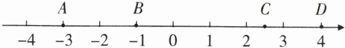 A点表示数-3,B点表示数-1,C点表示数2.5,D点表示数4