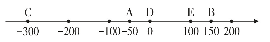 A队:-50分;B队:150分;C队:-300分;D队:0分;E队:100分.