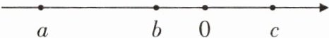 3. 如图所示,根据有理数$a$,$b$,$c$在数轴上的位置,比较$a$,$b$,$c$,$0$的大小.