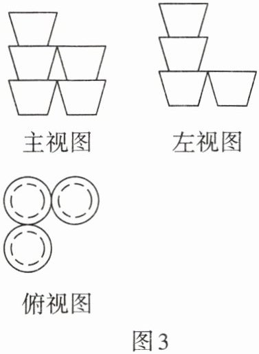 3. 若干桶方便面摆放在桌子上,图3所给的是它的实物图片的三视图,则这一堆方便面共有