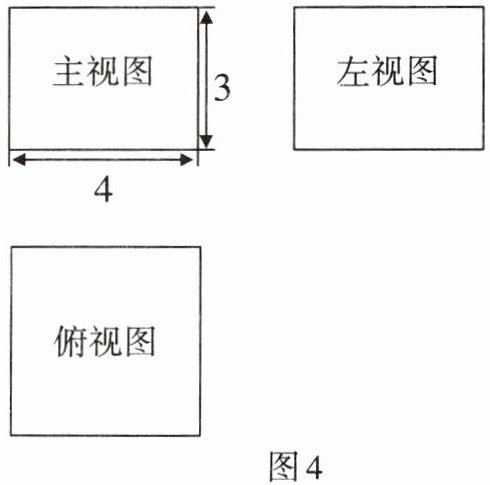 因为俯视图为正方形,主视图中长为$4$,所以底面正方形边长$a = 4$,高$h=3$。