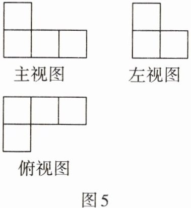 2. 图5是由一些相同的小正方体构成的立体图形的三视图,构成这个立体图形的小正方体的个数是多少?