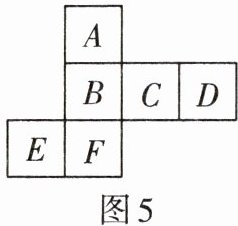 2. 图5是一个正方体的展开图,每个面上都标注了字母,现将展开图向下翻折,请根据要求回答下列问题: