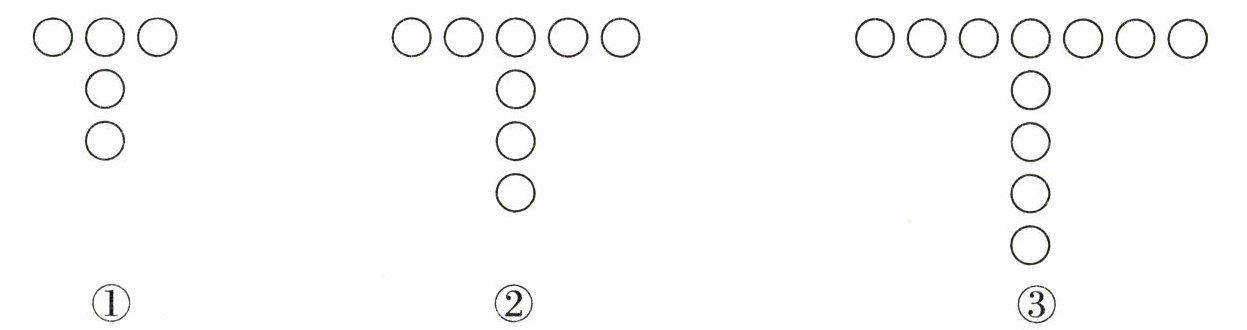 从图案中可以看出,第一个“T”字图案需要5枚棋子,第二个“T”字图案需要8枚棋子,第三个“T”字图案需要11枚棋子……