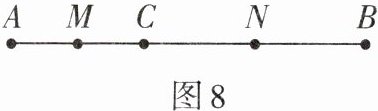 4. 如图8,点$C为线段AB$上一点,点$M是线段AC$的中点,点$N是线段BC$的中点.
