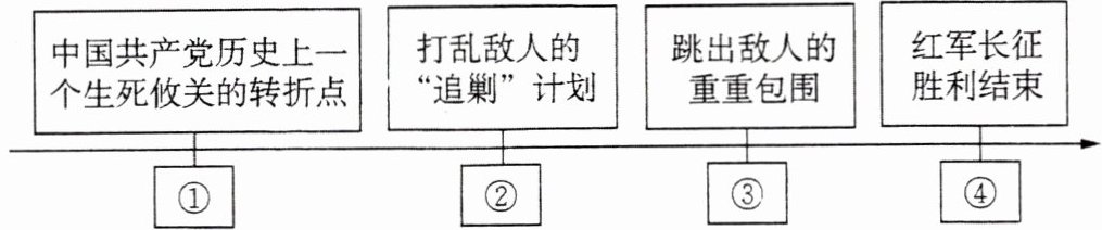 16. (2024·青岛改编)在“重走长征路·忆峥嵘岁月”的研学活动中,某同学制作了下面的路线图(部分)。下列与图中①②③④处对应正确的是( )。