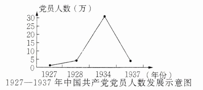 (1)观察材料一并结合所学知识,分析1934—1937年中国共产党党员人数急剧下降的原因。