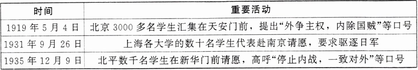 9. 下表列举了我国近代青年学生的一些重要活动。据此可知,他们( )。