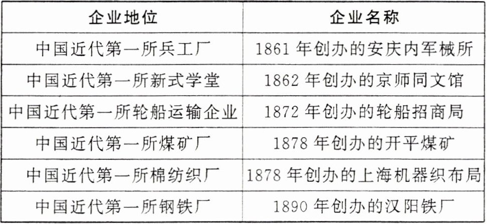 (3)意义:洋务运动使中国近代军事工业、民用工业、交通运输业等有了一定程度的发展,客观上促进了中国民族资本主义的产生。