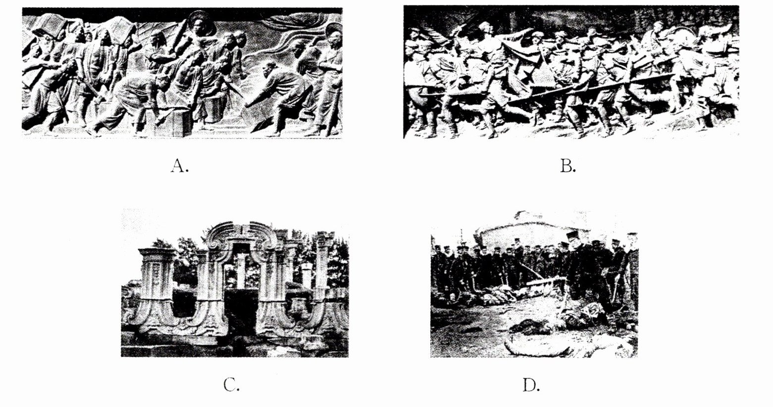 7. 美国纽约《世界报》曾刊登了这样一段话:“日本是披着文明的皮而带有野蛮筋骨的怪兽。日本今已摘下文明的假面具,暴露了野蛮的真面目。”下列与之相关的图片是( )。