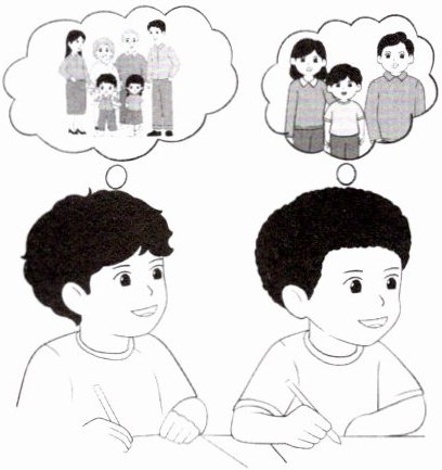 Ⅶ. Read and choose. (Mike 与 John 画了全家福,并互相分享各自的全家福。选择恰当选项的补全对话。)