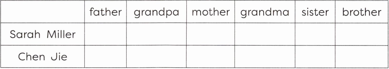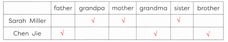 Task 1: Read and tick. (观察两人的画,在表格中“√”出他们所画的家人。)