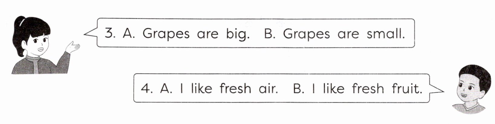 Ⅱ. Listen and circle.(在水果基地里,Sarah和John在谈论什么?听录音,圈出你所听到句子的选项。)