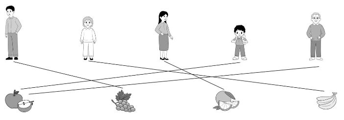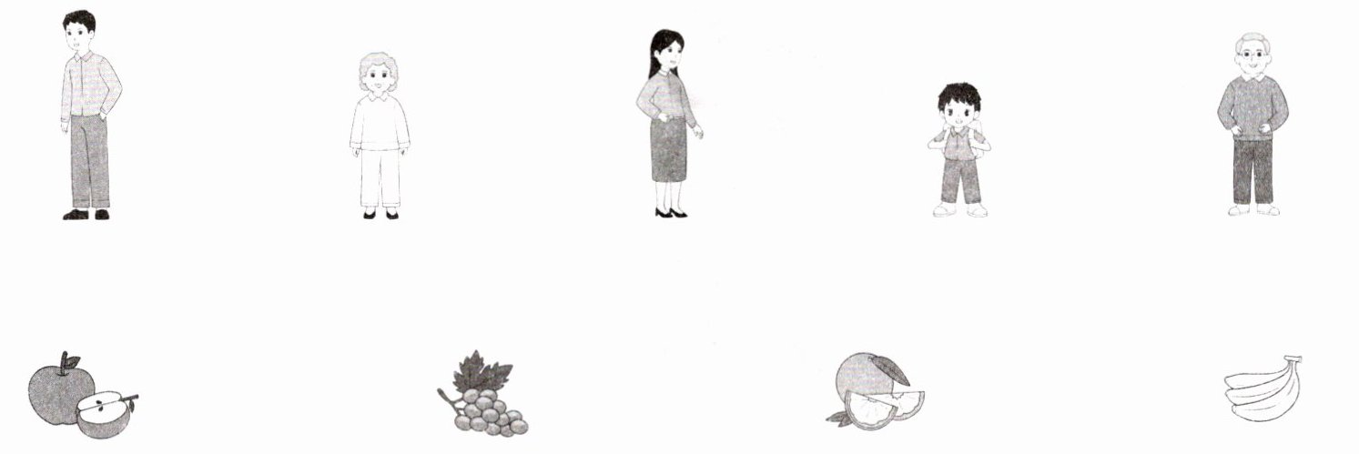 Ⅴ. Listen and match.(Bob在描述他与家人分别喜欢的水果类型。听录音,完成对应的连线任务。)