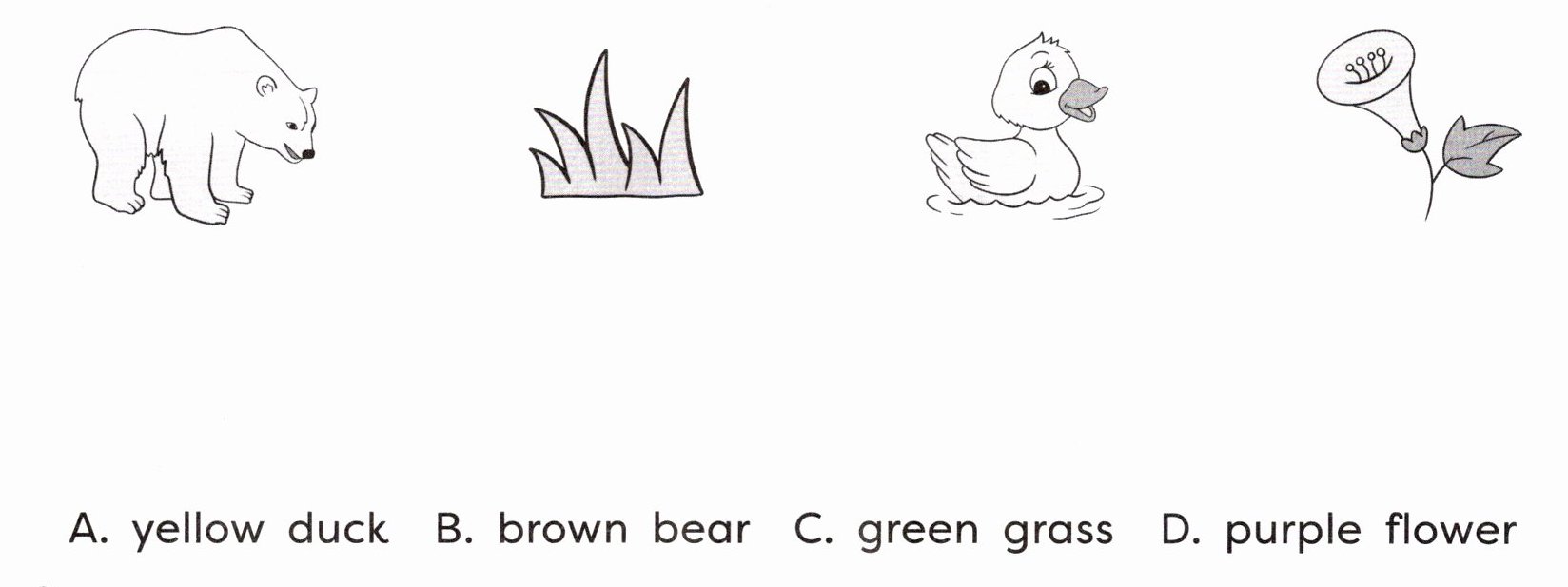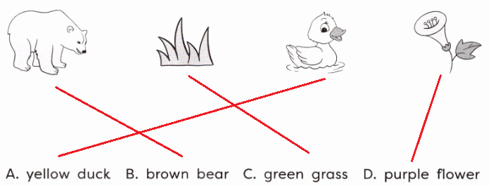 Ⅲ. Look and choose. (Sarah和同学们又走到超市的水果区。看图,根据图片选择正确的颜色。)