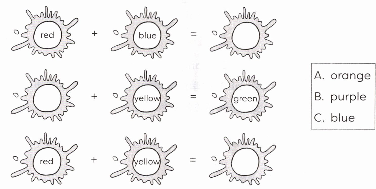 Ⅵ. Look and choose. (途中休息时,Sarah和同学们想用绘画来记录沿途风景,用颜料帮他们调出想要的颜色吧。看图,选出恰当的单词。)