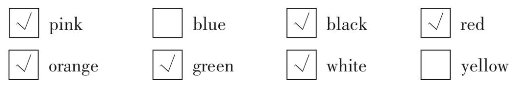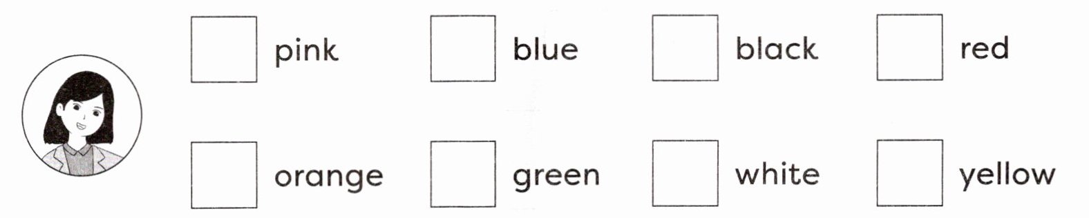 Ⅰ. Listen and tick. (研学第 2 站,同学们去消防队。Miss Liu 途中给学生科普关于颜色的小知识。听录音,“√”出你所听到的颜色单词。)