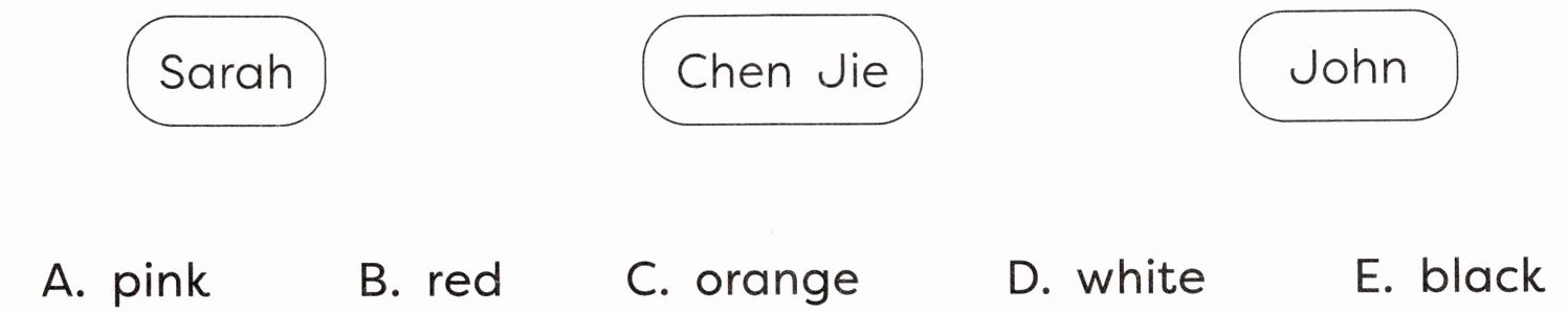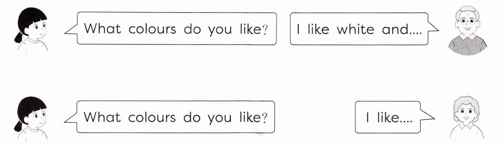 Ⅱ. Listen and match. (同学们互相交流喜欢的颜色。听录音,将人物与对应的颜色连线。)
