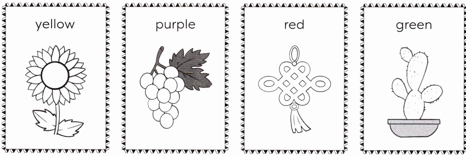 )4. Sarah likes purple flowers.Task 2: Read and draw. (根据 Sarah 的描述词,帮她画一幅海边景象画,并涂上对应的颜色吧。)