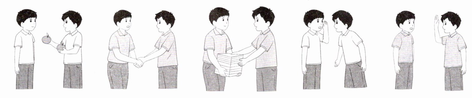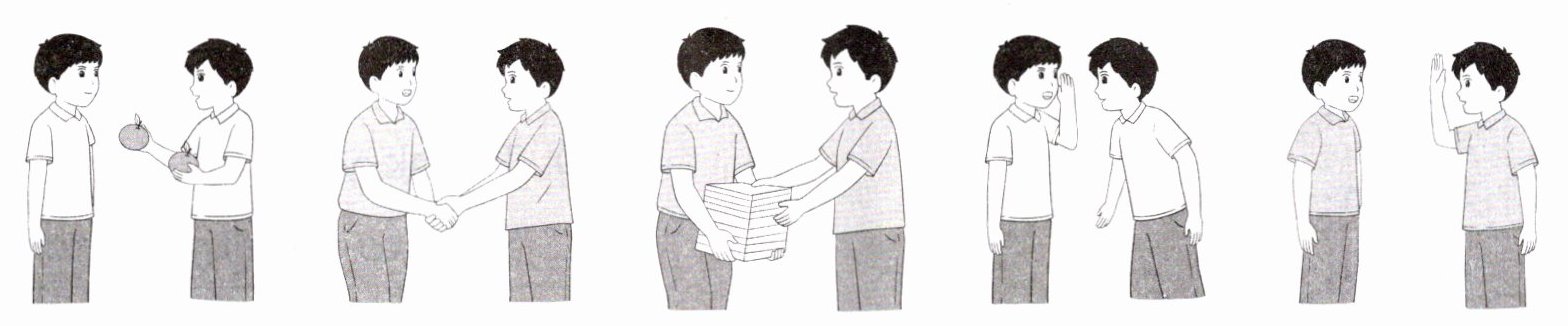 I'm Mike. I have a new friend. I smile. I wave my hand. I say “Hello!” We shake hands. I listen with care. I help my friend. I share my apples with my friend. I am nice to my friend. I am a good friend.