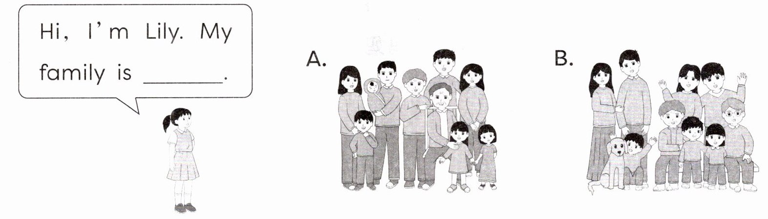 Ⅲ. Listen and circle.(Lily 正在向朋友介绍一张 2019 年的全家福。听录音,圈出 Lily 的全家福选项。)