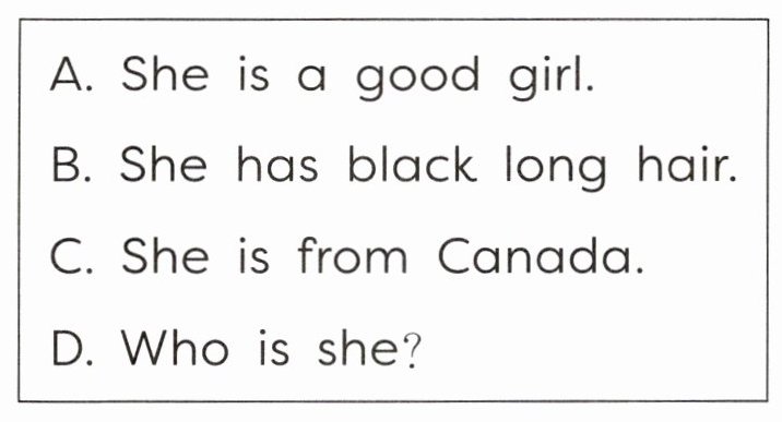 1. D 2. C 3. B 4. A