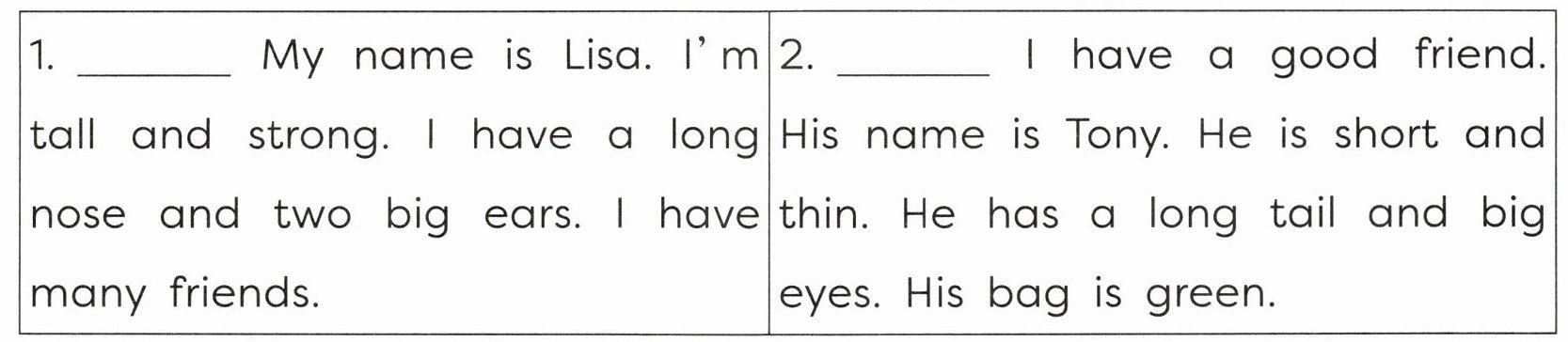 Task 1:Read and write. (根据材料,将同学们所扮演动物对应的图片序 号填在相应的横线上。