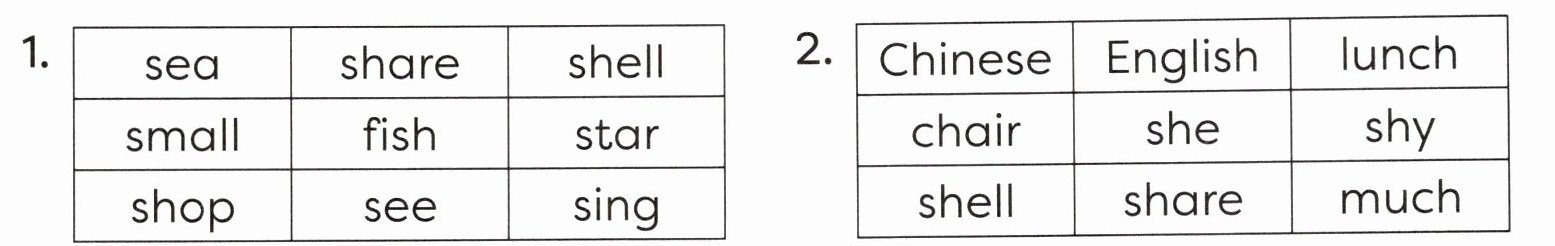 Ⅱ. Listen, circle and match. (接着由同桌两人一起玩“圈一圈、连一连”的宾果游戏。听录音,圈出你所听到的单词,并连成一条线,即可获胜。)