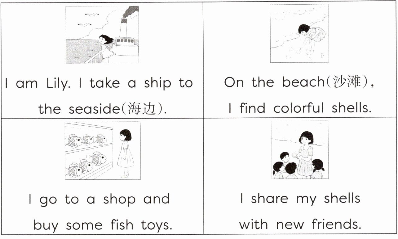 Ⅲ. Read and write. (游戏结束后,Miss White 与同学们共同阅读一个关于友谊的绘本小故事。阅读绘本,圈出绘本中与所给单词“she”画线部分发音相同的单词,并写在四线三格上。重复单词只写一个。)