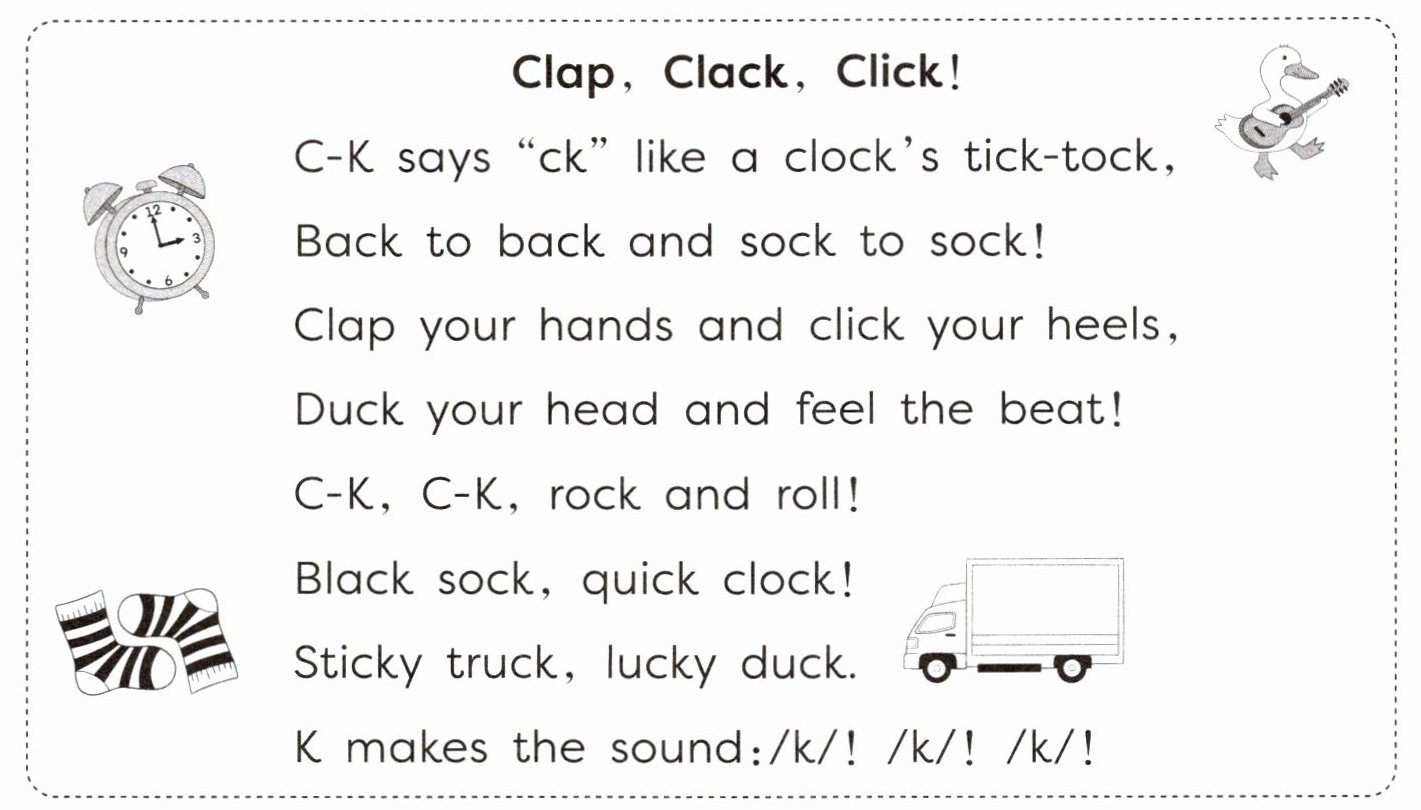 Ⅱ.圈出的词有:Clack, Click, clock, tick-tock, Back, sock, click, Duck, rock, Black, sock, quick, Sticky, truck, lucky.
