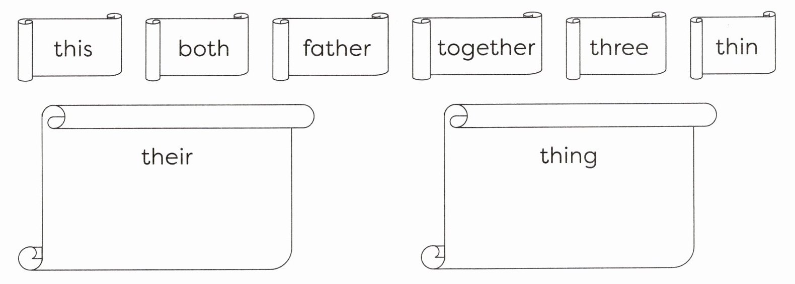 Ⅲ. Read and classify. (Chen Jie 将大家赠送的礼物分类整理。请根据字母组合“th”的发音规则,将下面纸张上的词汇分类整理到相应的书本上。)