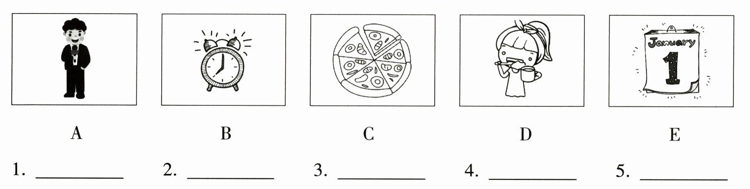 看图听句子,选出与句子意思一致的图画。每个句子读一遍。