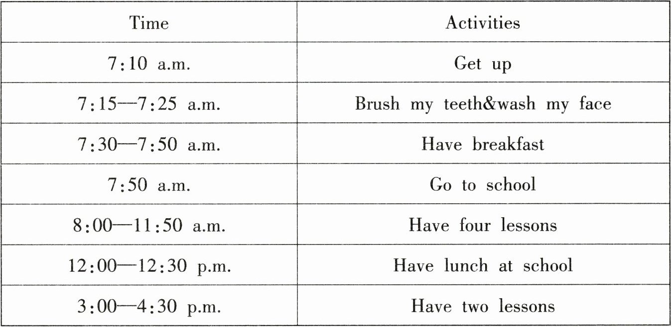)42. What time does Sally brush her teeth on school days?A. At 7:00 a.m. B. At 7:15 a.m. C. At 7:50 a.m.