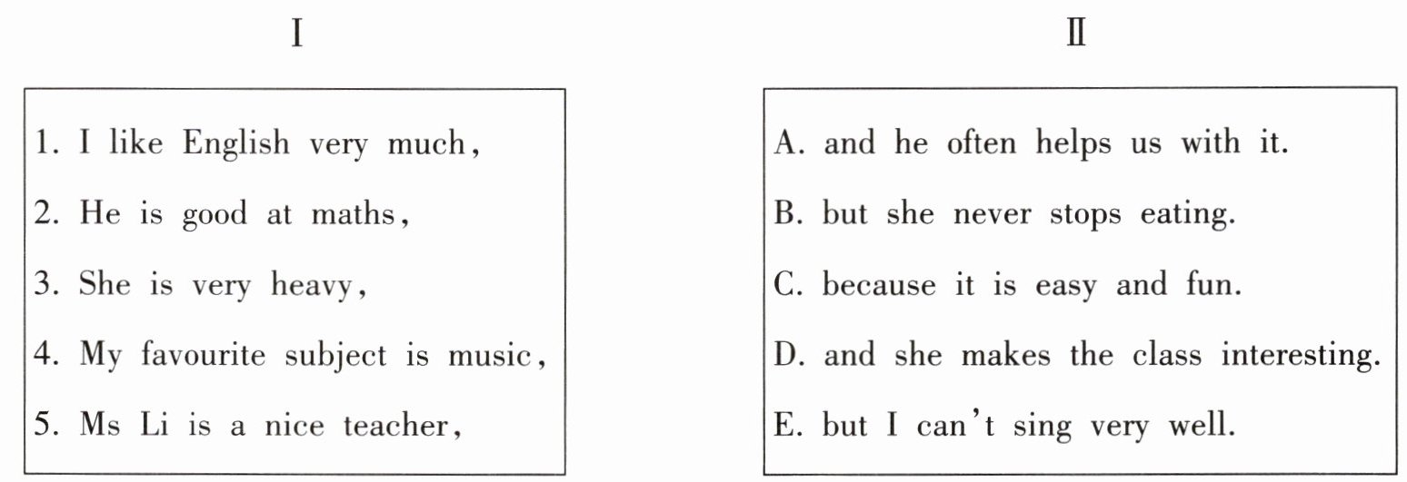 Ⅲ. 从Ⅱ栏中选出与Ⅰ栏相匹配的句子并连线,使之自然通顺。