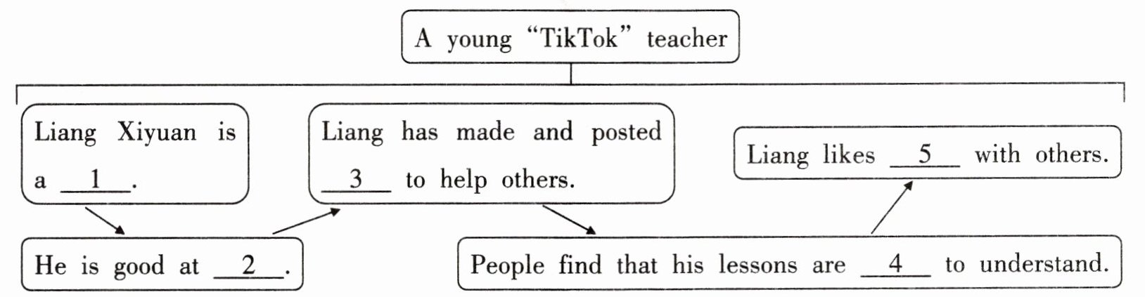 8. I think Liang is kind and helpful. Because he studies hard, and uses his talents to help others. By making others' lives better, his life will surely become better, too.(言之有理即可)