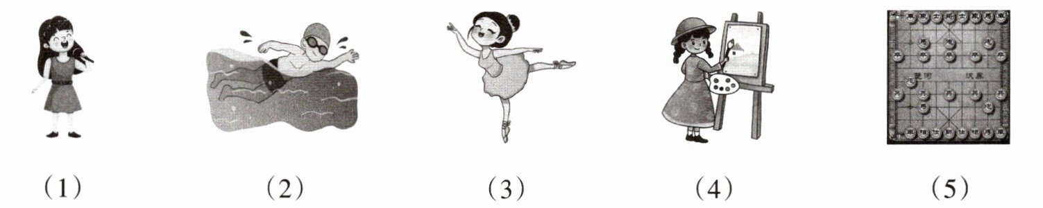 1. sings 2. swim 3. dance 4. paints 5. chess