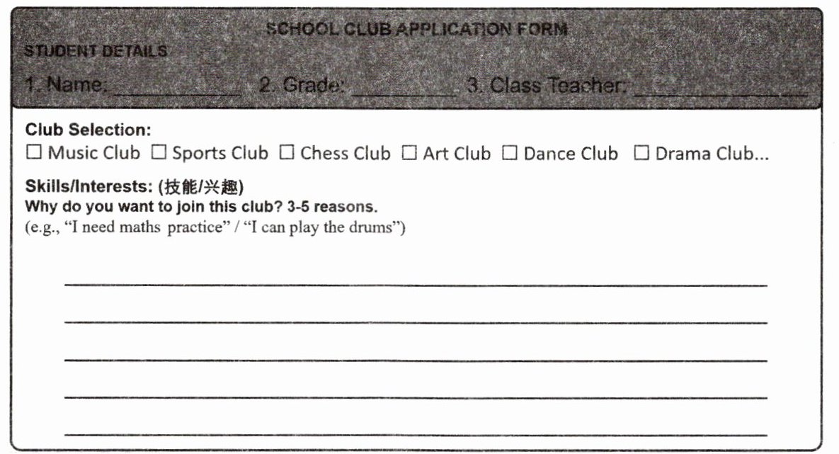 Ⅲ. 请完成如下社团申请表,并写明要加入的原因。