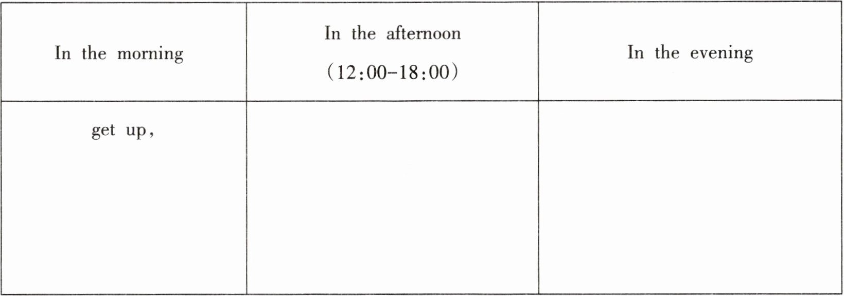 Ⅰ. 根据实际情况,将你的日常作息时间填入下表中。