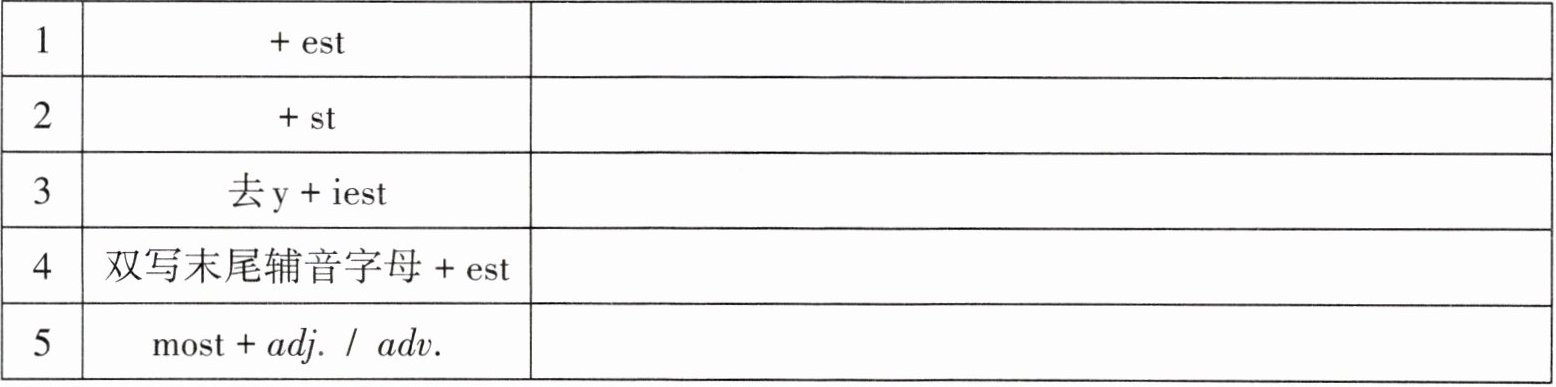 Ⅴ. 将下列形容词或副词按其最高级构成形式分类,并将其最高级形式填入表格中相应位置。