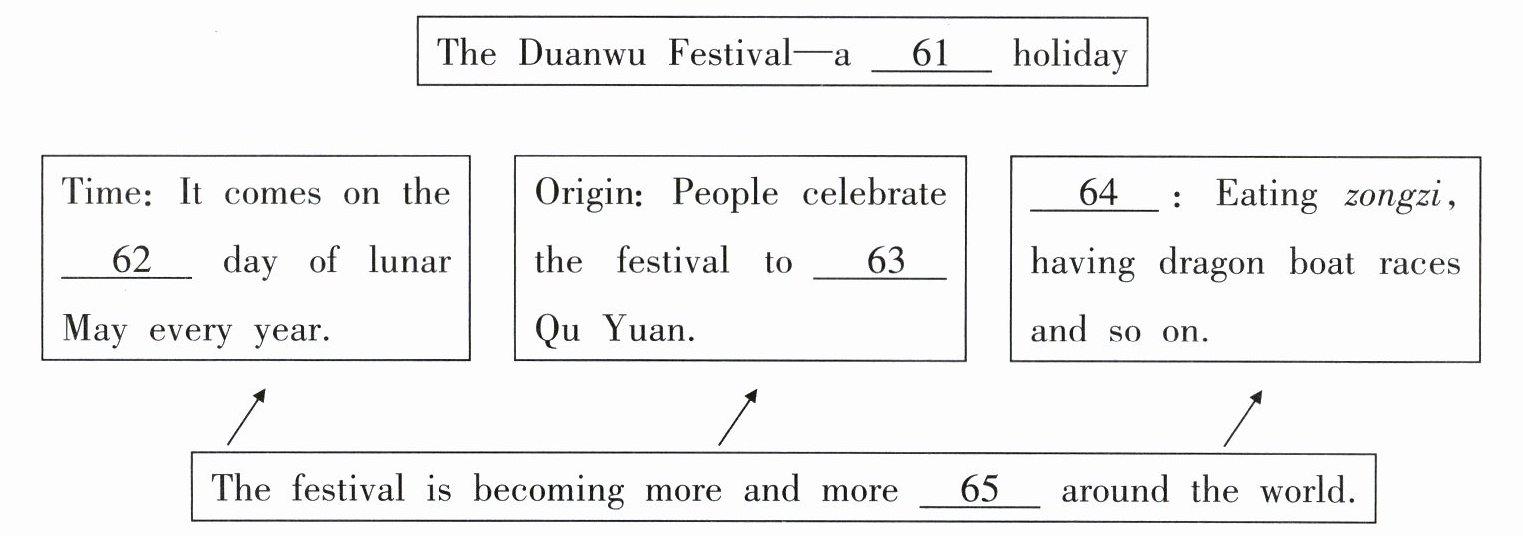 great poet Qu Yuan and people can have a good time with their family.(答案不唯一,言之有理即可)