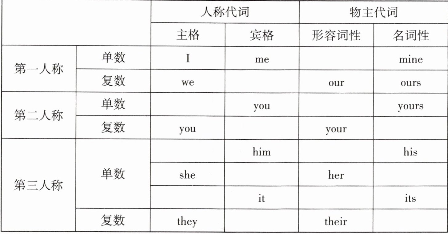 | | | 人称代词 | | 物主代词 | |