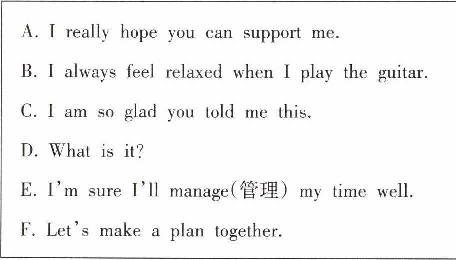 Dad: I understand that. The problem is that you practise playing the guitar for too long. You also take part in too many activities. It will affect (影响) your study.