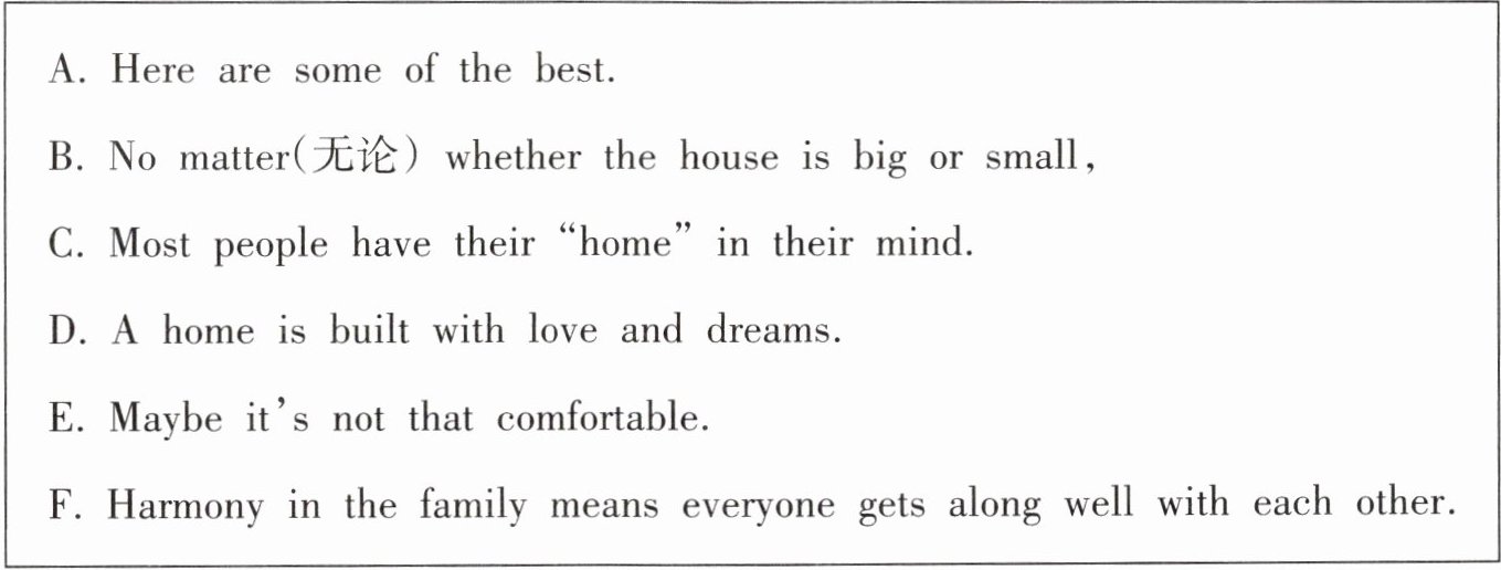 Ⅰ. 阅读短文,了解有关“家”的谚语。从短文后的方框中选出能填入空白处的最佳选项,其中有一项为多余选项。