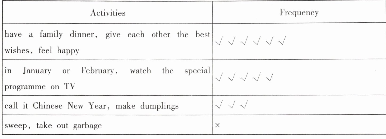 Ⅱ. 根据表格内容,将 always,often,sometimes,never 填入空格内,完成报告。