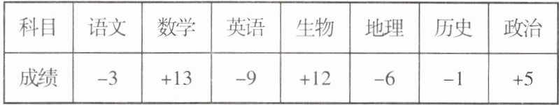 五、小涛同学在一次测试中, 各科成绩如下表所示, 高出全班平均分部分记作正数, 低于全班平均分部分记作负数, 请回答: