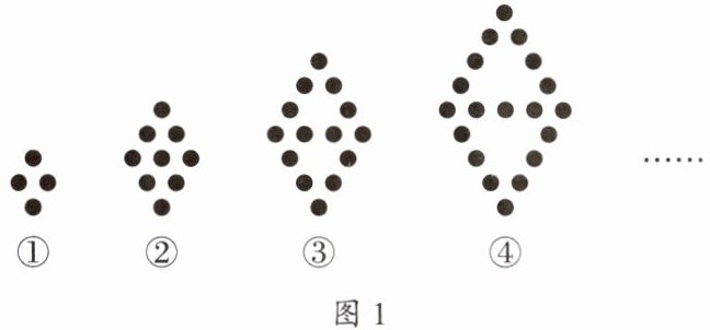 1.(跨学科·美术)美术课上,老师请同学们用黑色棋子设计有规律的图案,小华这组出色地完成了这个设计,摆出的图案不仅具有艺术美感,还存在数学规律,如图1.观察他们的设计,按此规律,则第⑥个图案需要棋子的个数是