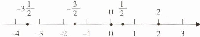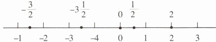 【例】画出数轴,并在数轴上画出表示下列各数的点:$\frac{1}{2}, -\frac{3}{2}, 0, 2, -3\frac{1}{2}$.