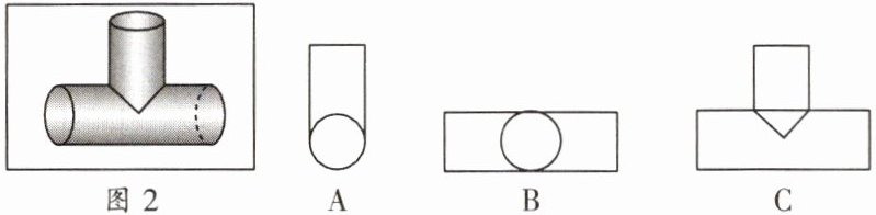 2. 如图 2,方框里是一个水管接头的实物图,请说出右边的三幅图分别从哪个方向看到的: